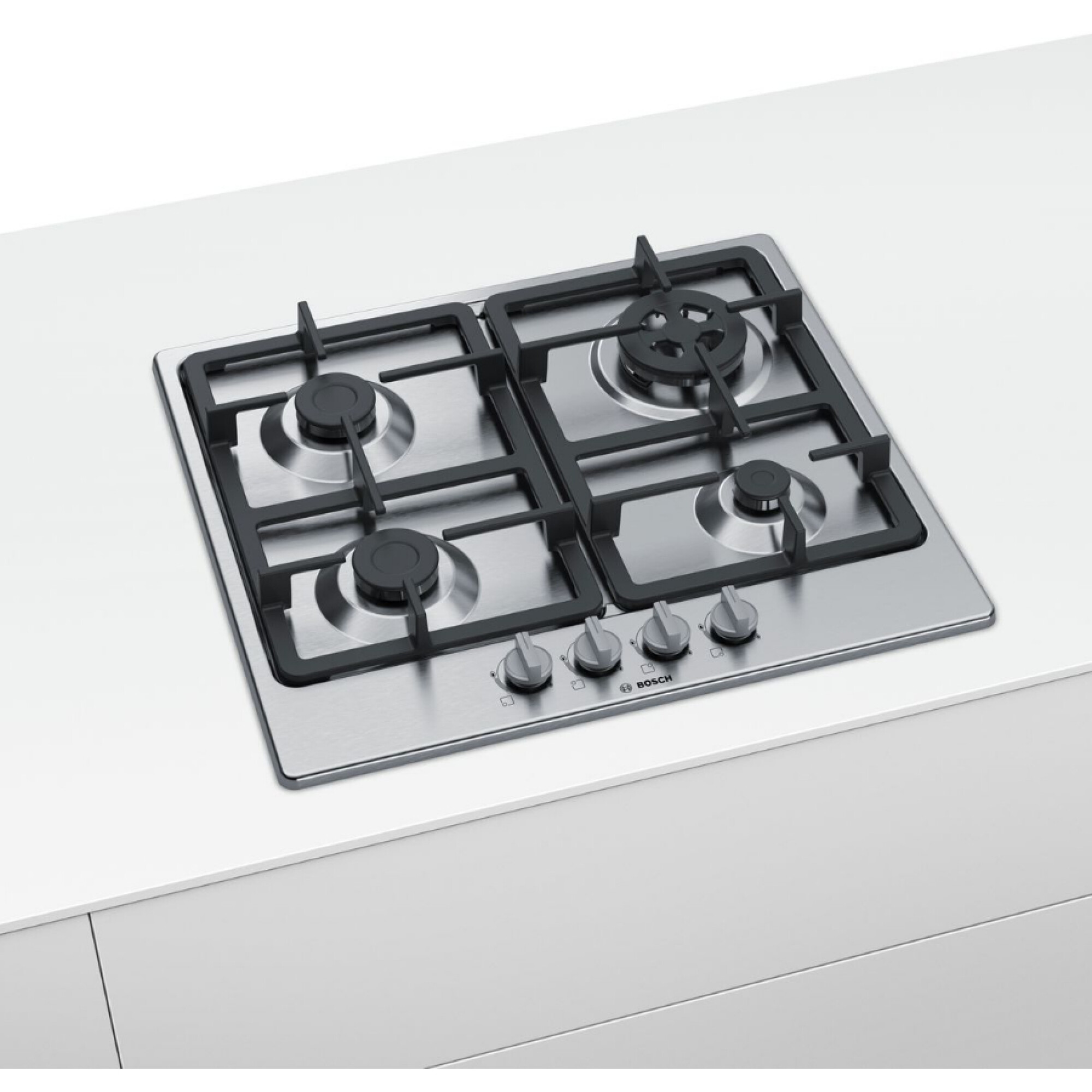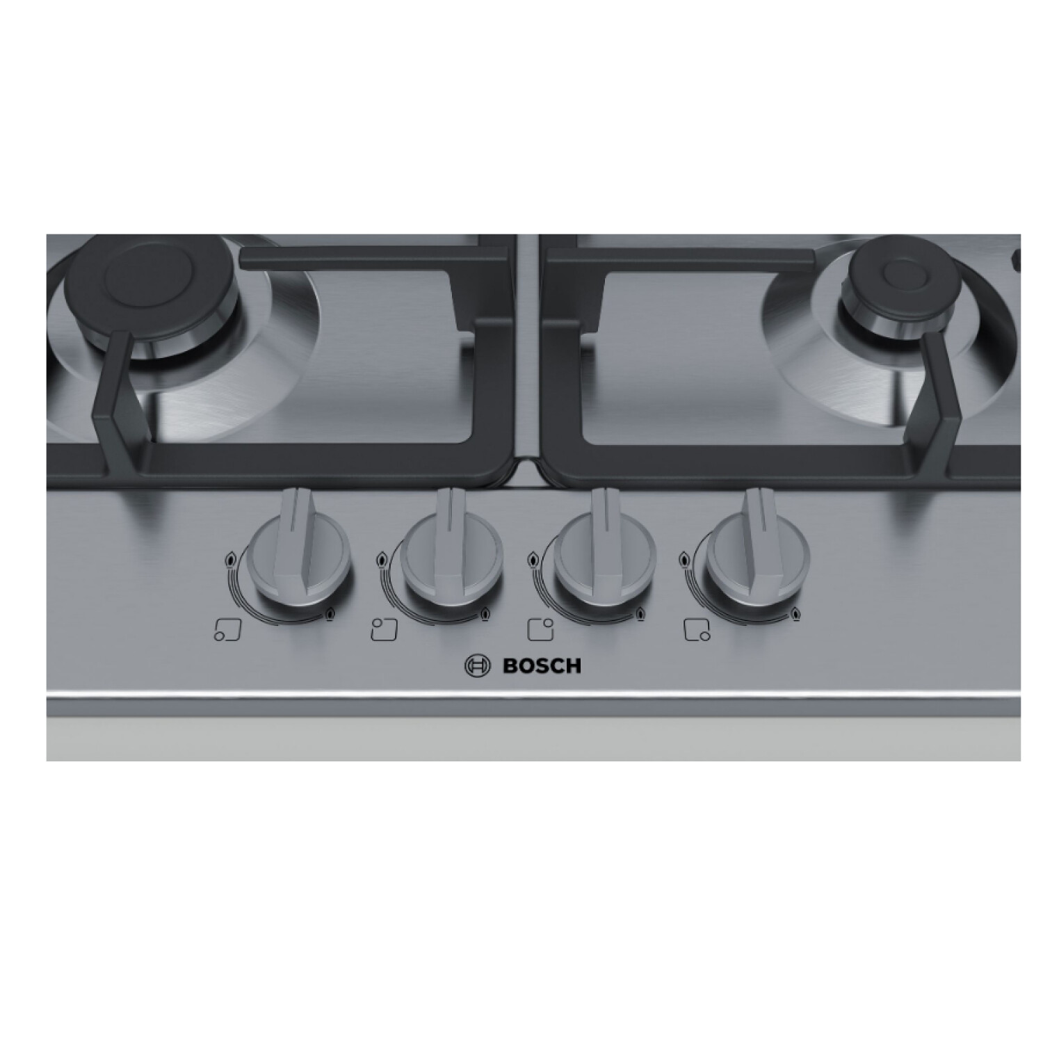 Anafe Bosch de 60 cm a gas con mesada de acero super resistente, mandos ergonómicos y sistema de seguridad Gas Stop. Tus platos están en buenas manos con los anafes Bosch.