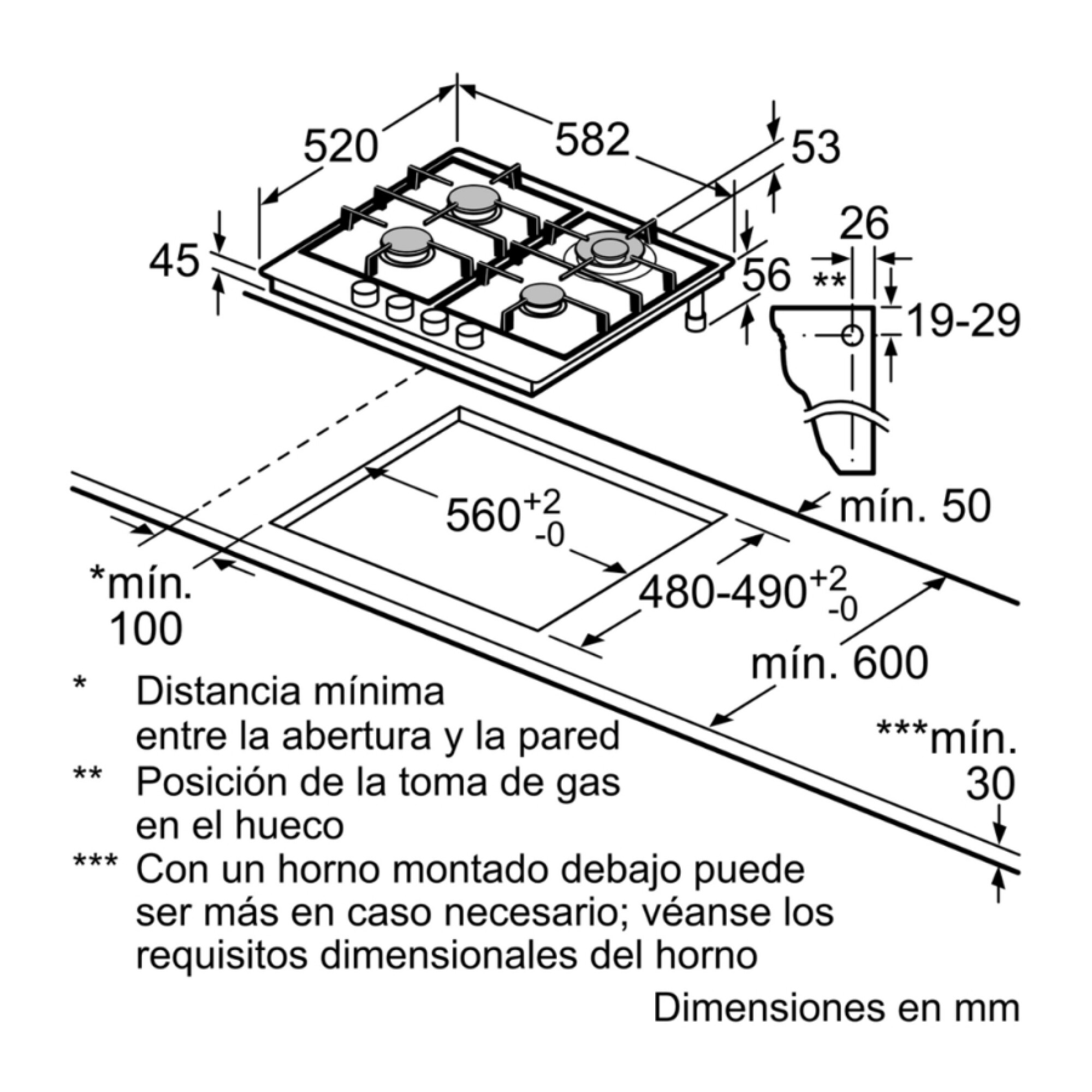 • Dimensiones aparato (hxaxp) sin incluir la puerta (mm) : 45 x 582 x 520