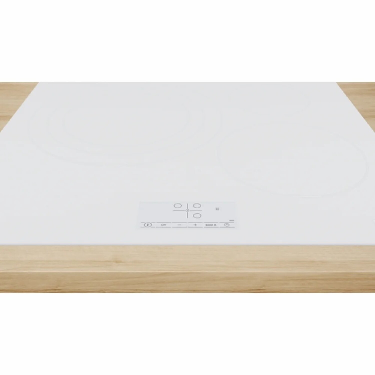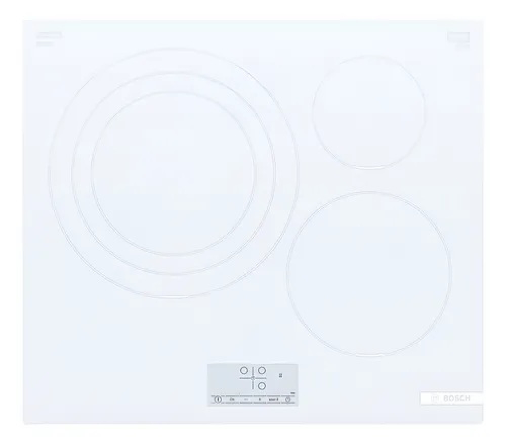 Placa de inducción con control TouchSelect de 17 niveles, 3 zonas con función Sprint, incluyendo una zona triple de 32 cm. Ofrece programación de tiempo con avisador, funciones de Inicio Automático y Memoria, bloqueo infantil, indicador de calor residual.