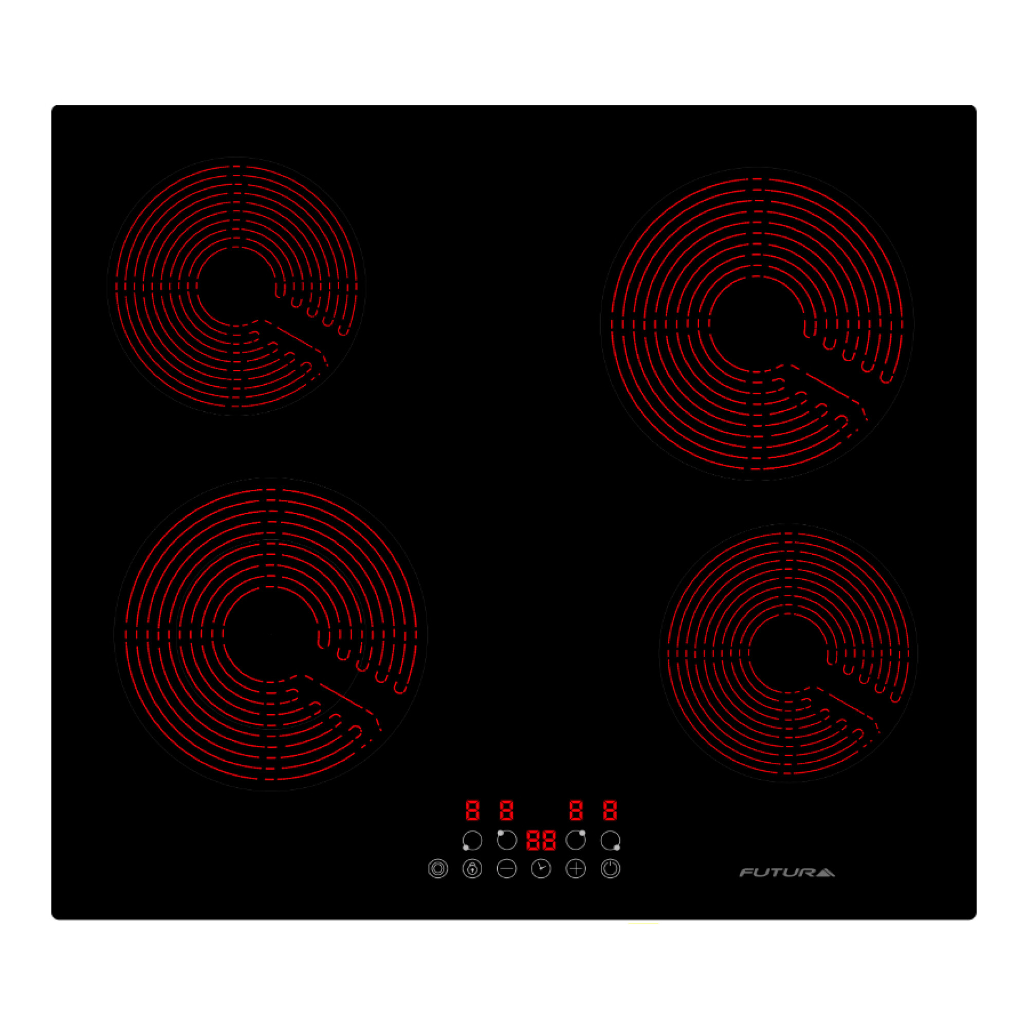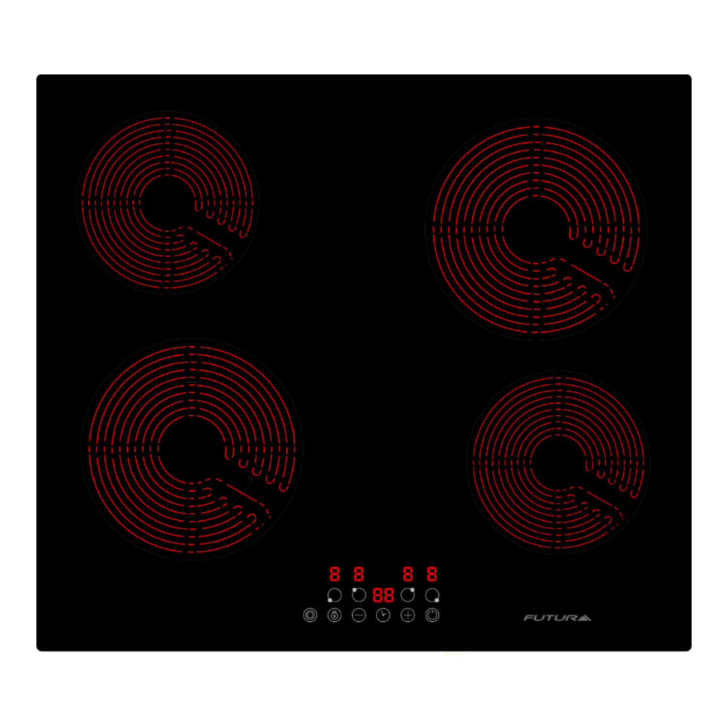 Anafe vitrocerámico futura de 4 zonas con 9 niveles de temperatura y apagado automático.