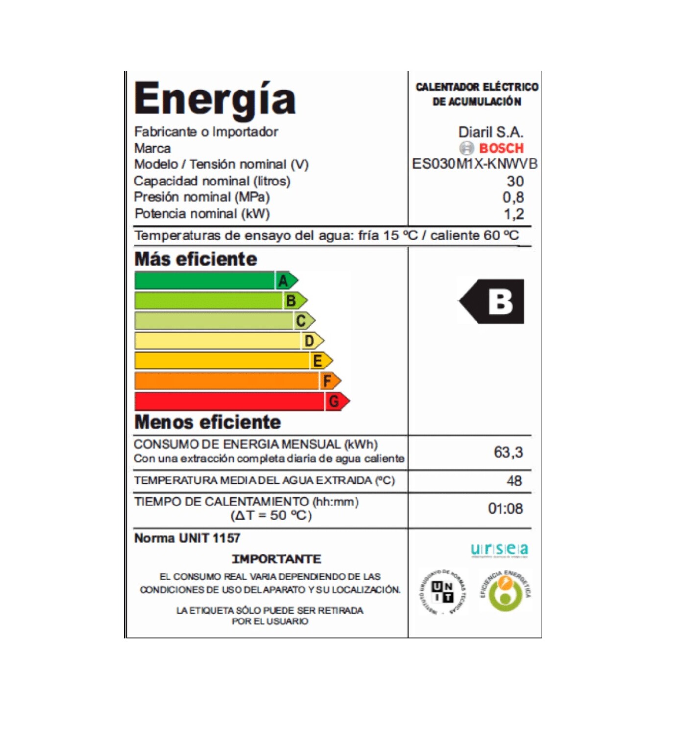 Calefón Bosch de 30 lts Aislamiento de espuma de poliuretano de alta densidad.