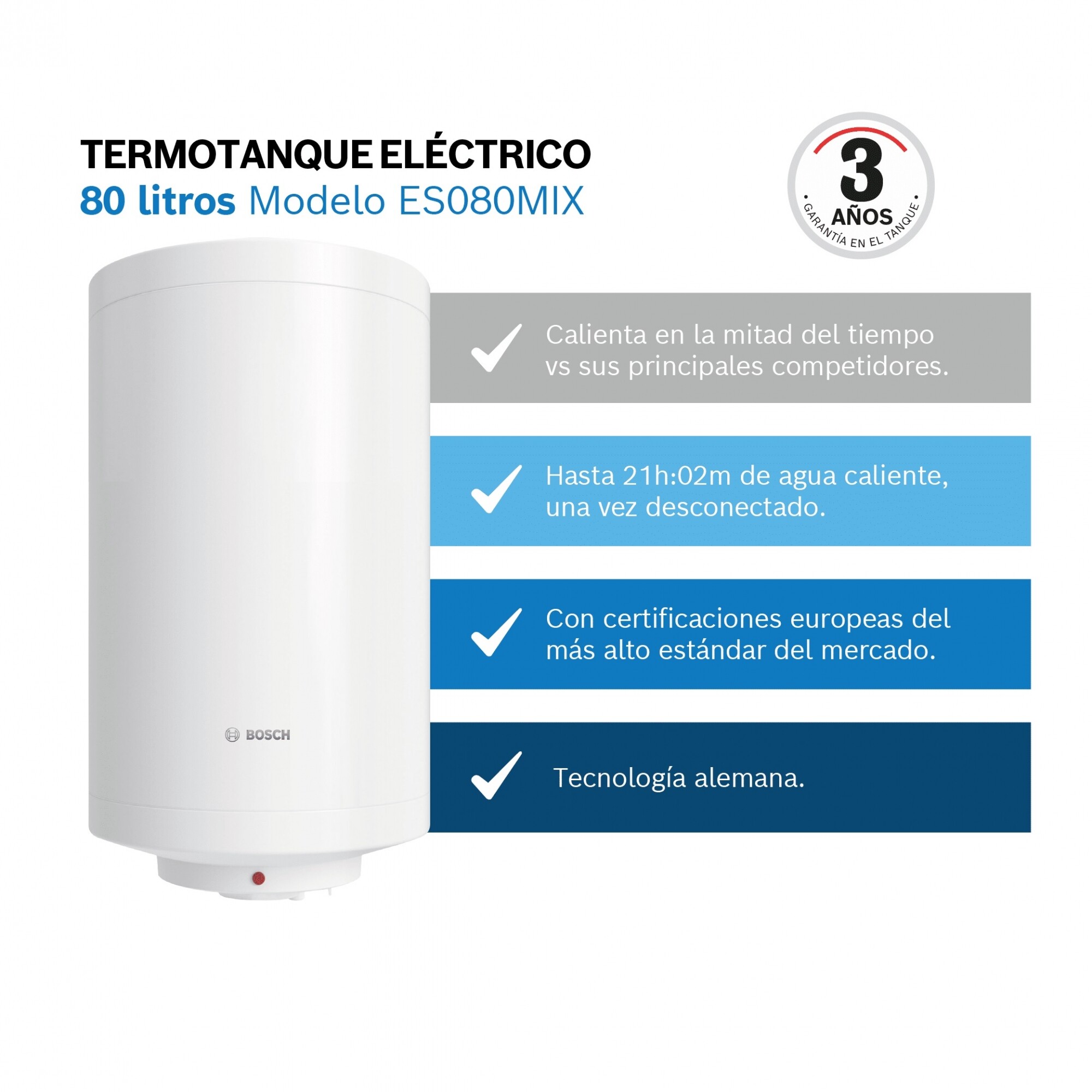 Calefon de acero Bosch de 80 lts eficiencia energética clase A. Este calefon es el aliado perfecto para una ducha reparadora.