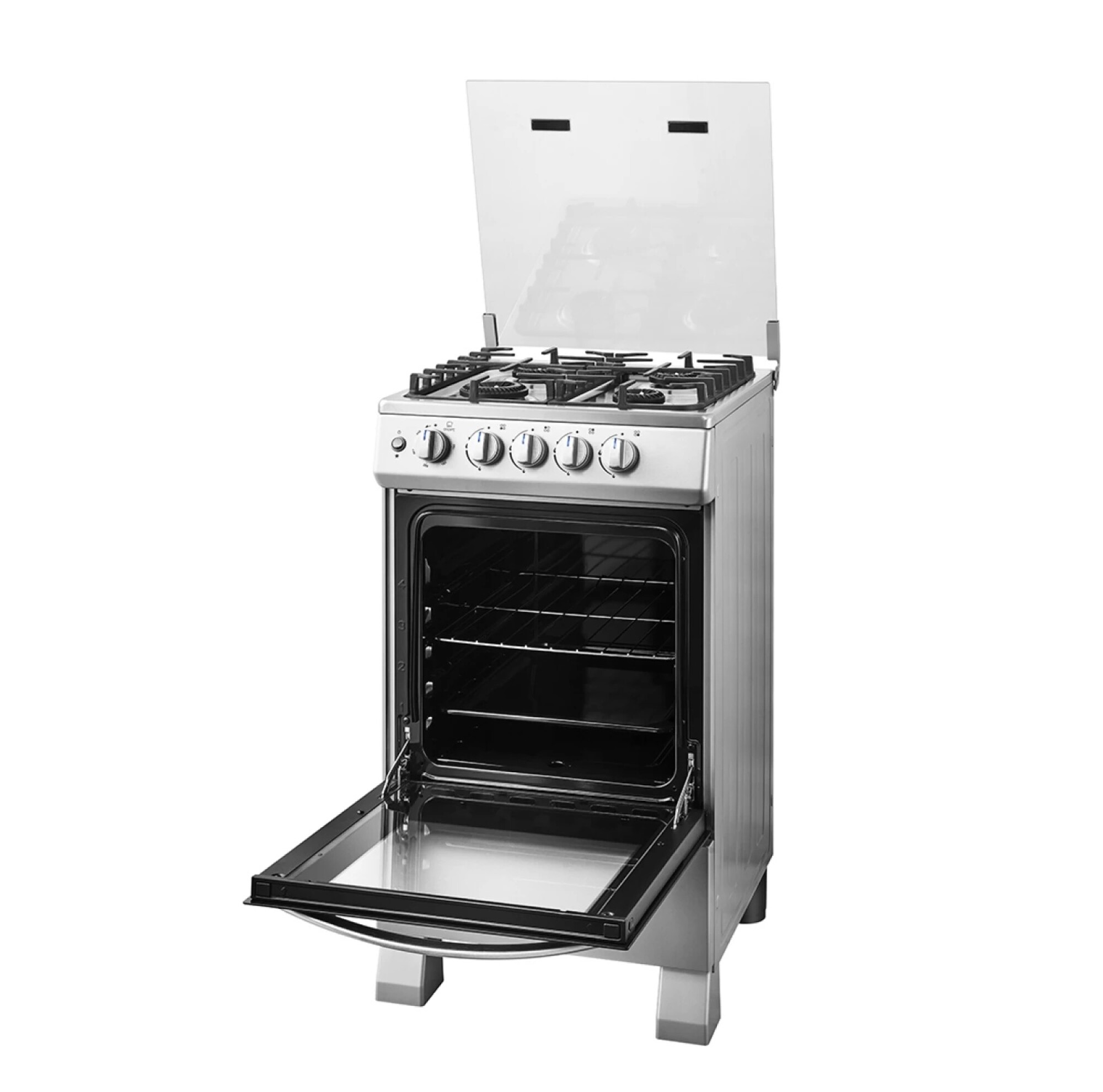 Cocina a gas GLP con encendido eléctrico y horno de 62 L: 4 hornallas FireVortex, puerta de doble vidrio, rejillas de hierro fundido y accesorios incluidos. Potencia y practicidad para cocinar con eficiencia y seguridad en tu hogar.