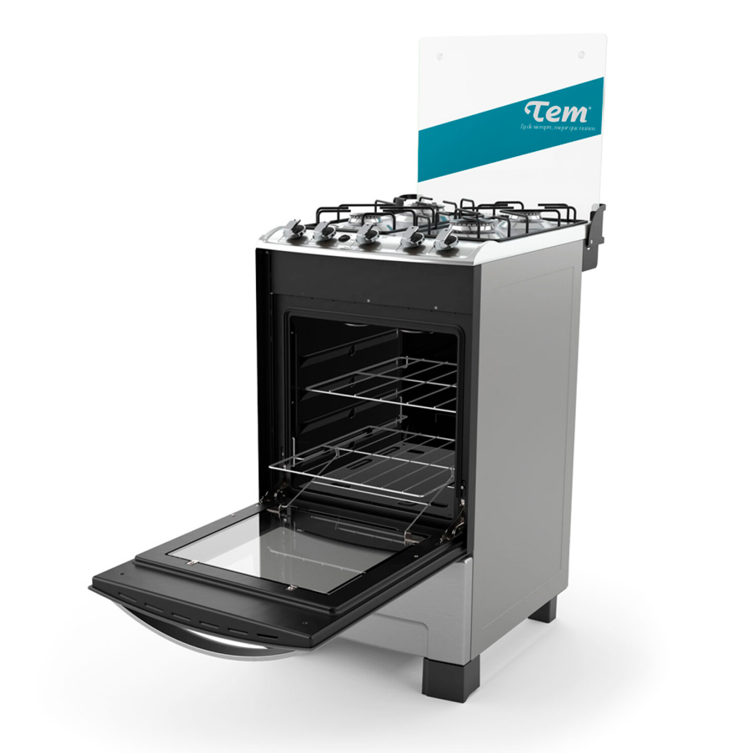 Cocina TEM color Silver a 4 hornallas con 1 quemador doble llama y horno a gas.
