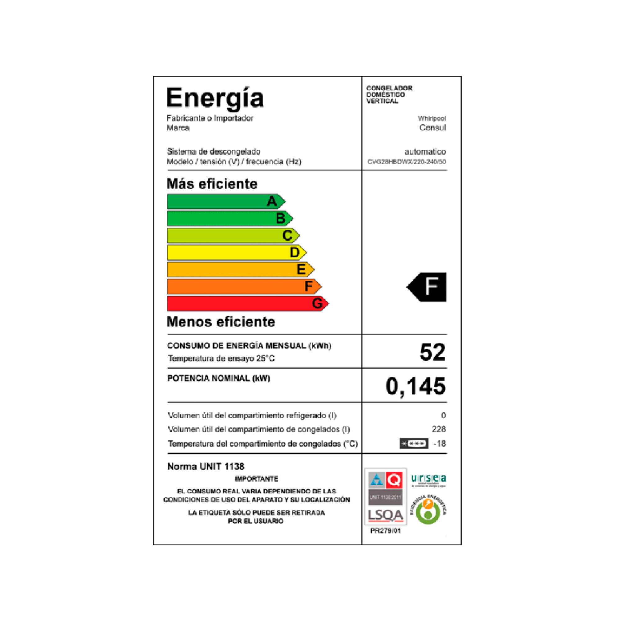 | Eficiencia | F |