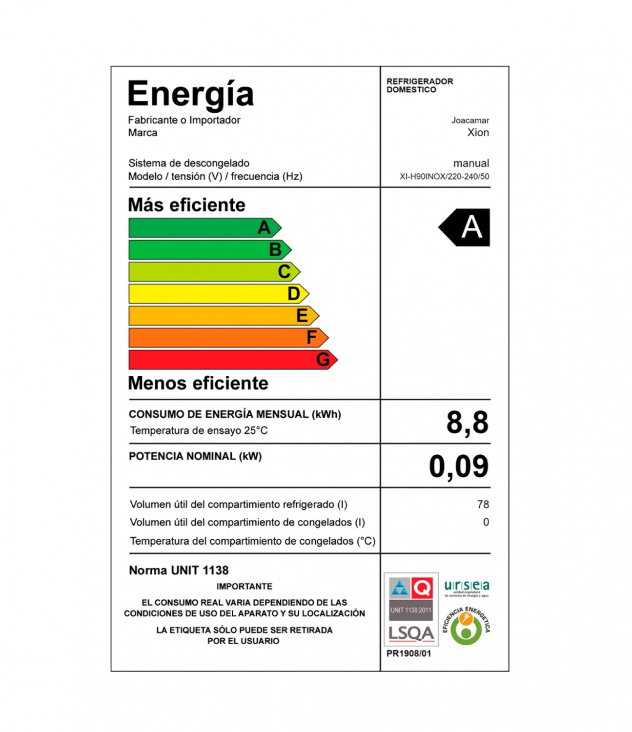Frigobar de 78 Lts de capacidad y eficiencia energética A.