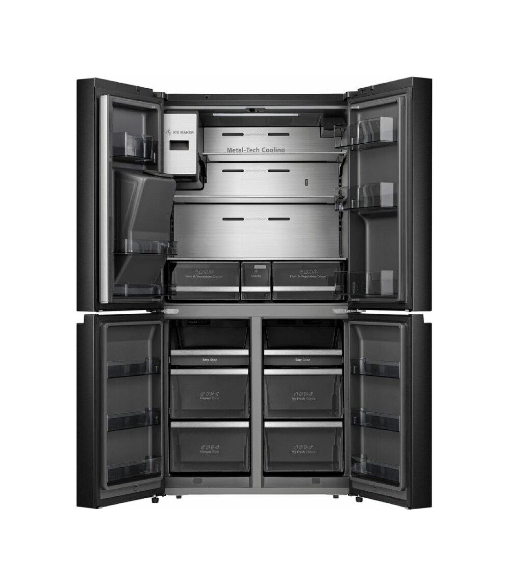 Su sistema de triple enfriamiento mantiene los alimentos frescos por más tiempo sin mezclar olores, mientras que el dispensador de agua y hielo te brinda máxima comodidad. Con funciones avanzadas como inventario de alimentos, lista de compras y recetas integradas, es la combinación perfecta de tecnología, diseño premium y practicidad para tu hogar