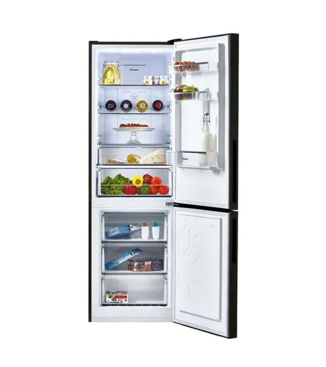 Heladera Candy Combi Negra 432L - No Frost con Conectividad SmartElegancia y funcionalidad se combinan en esta heladera de diseño negro, ideal para cocinas modernas. Con una gran capacidad de 432 litros, estantes de vidrio cromado y cajones transparentes, te permite organizar tus alimentos de forma eficiente.