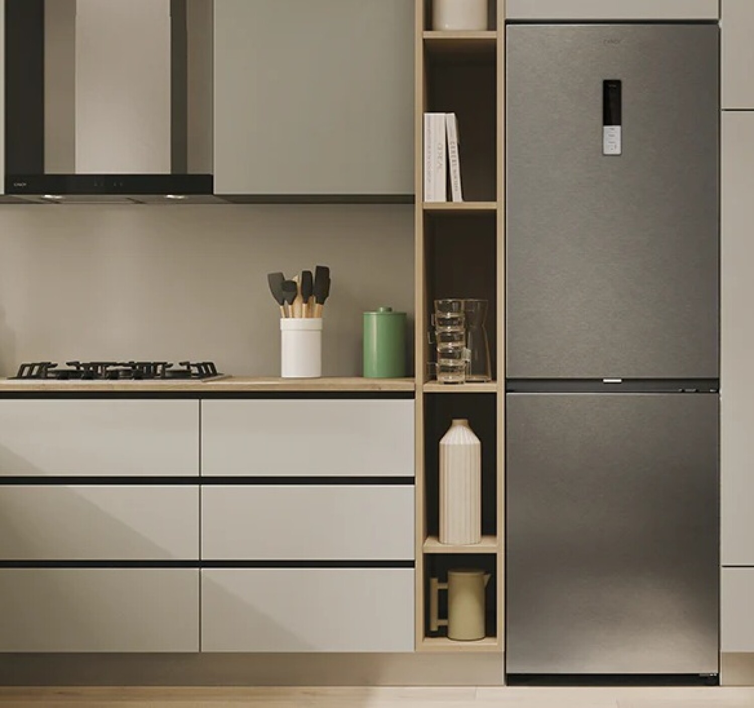 Heladera Candy Combi Color gris 432L - No Frost con Conectividad SmartElegancia y funcionalidad se combinan en esta heladera de diseño negro, ideal para cocinas modernas. Con una gran capacidad de 432 litros, estantes de vidrio cromado y cajones transparentes, te permite organizar tus alimentos de forma eficiente.