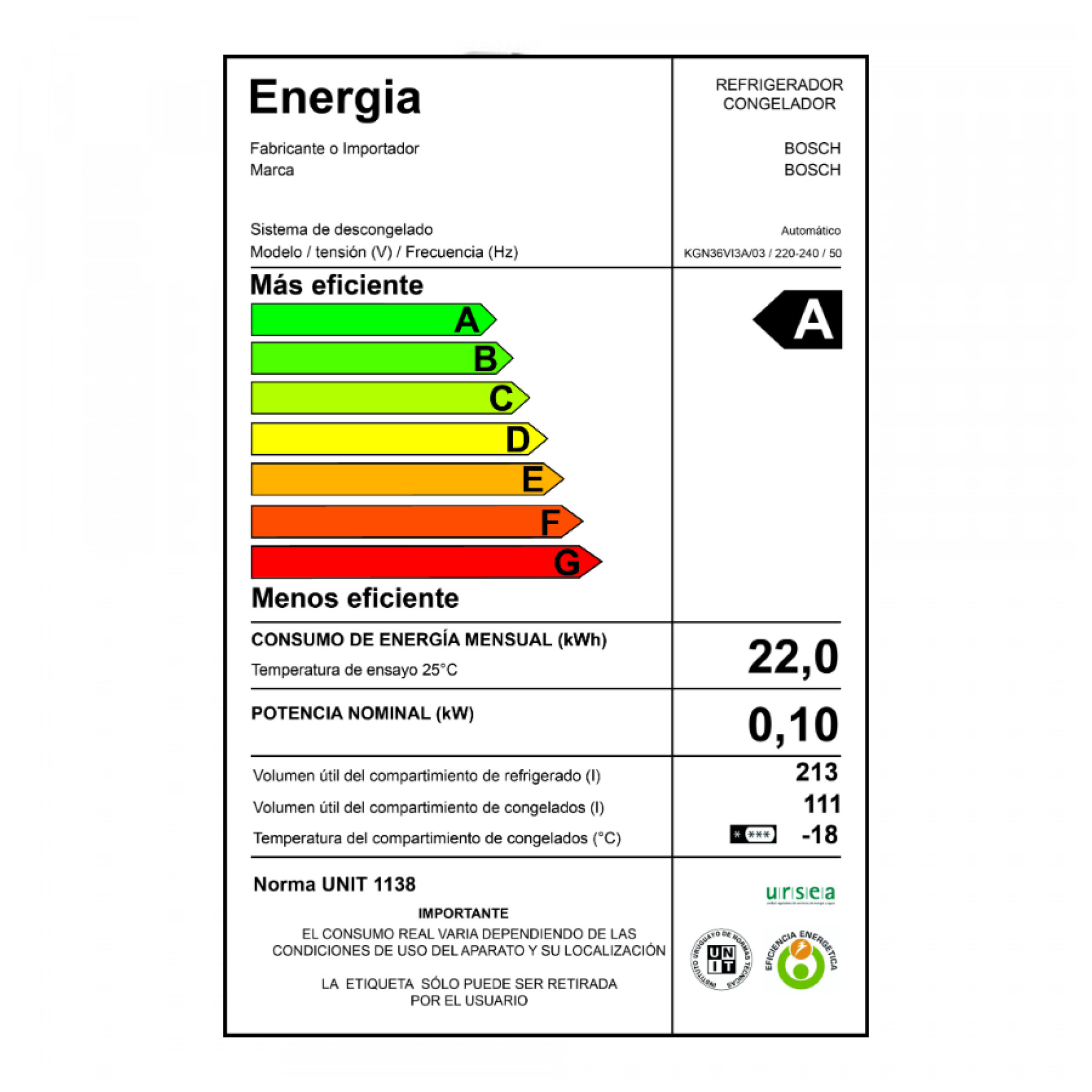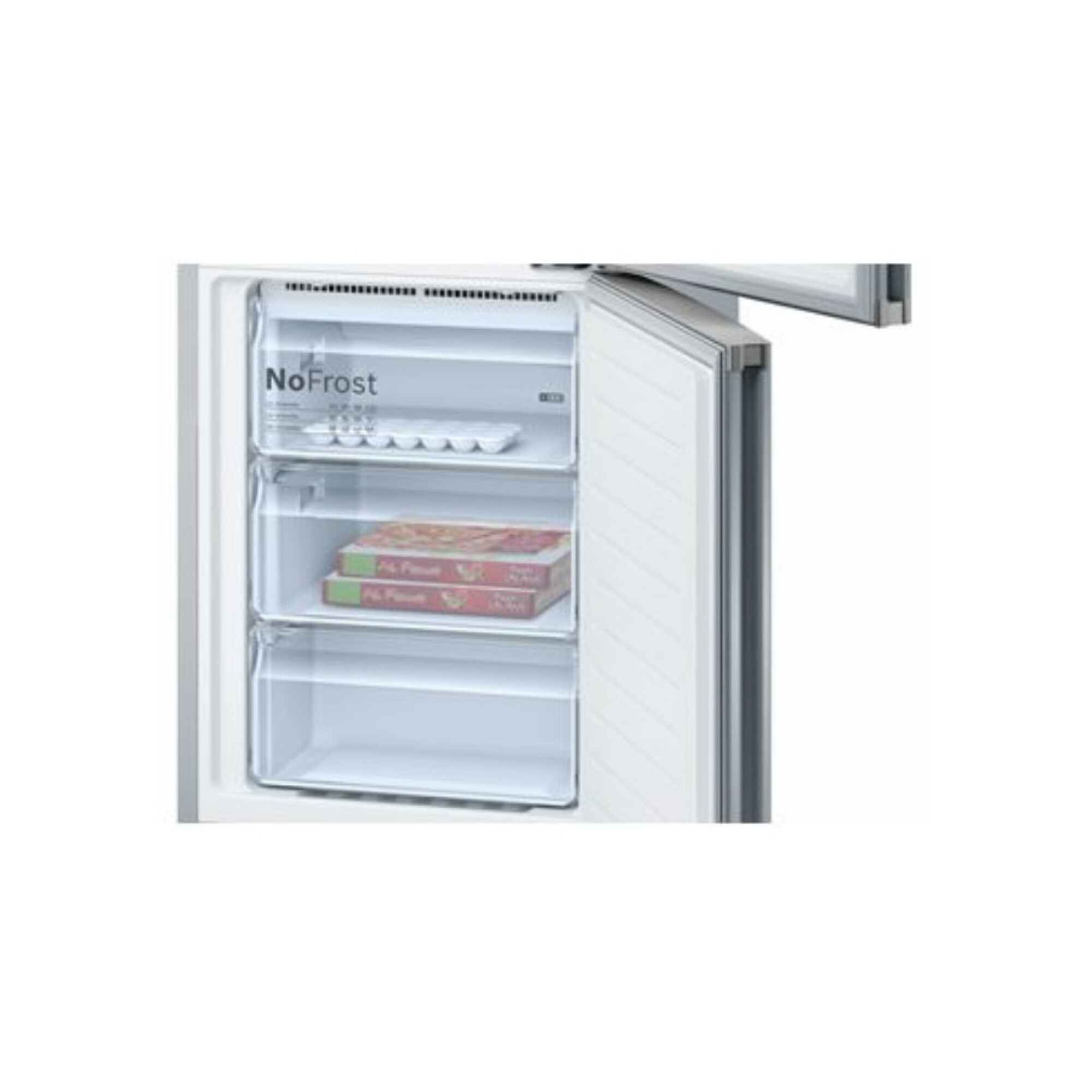 Barraca Europa te ofrece elegante heladera Bosh de frío seco, color silver , con una capacidad bruta de 357 litros