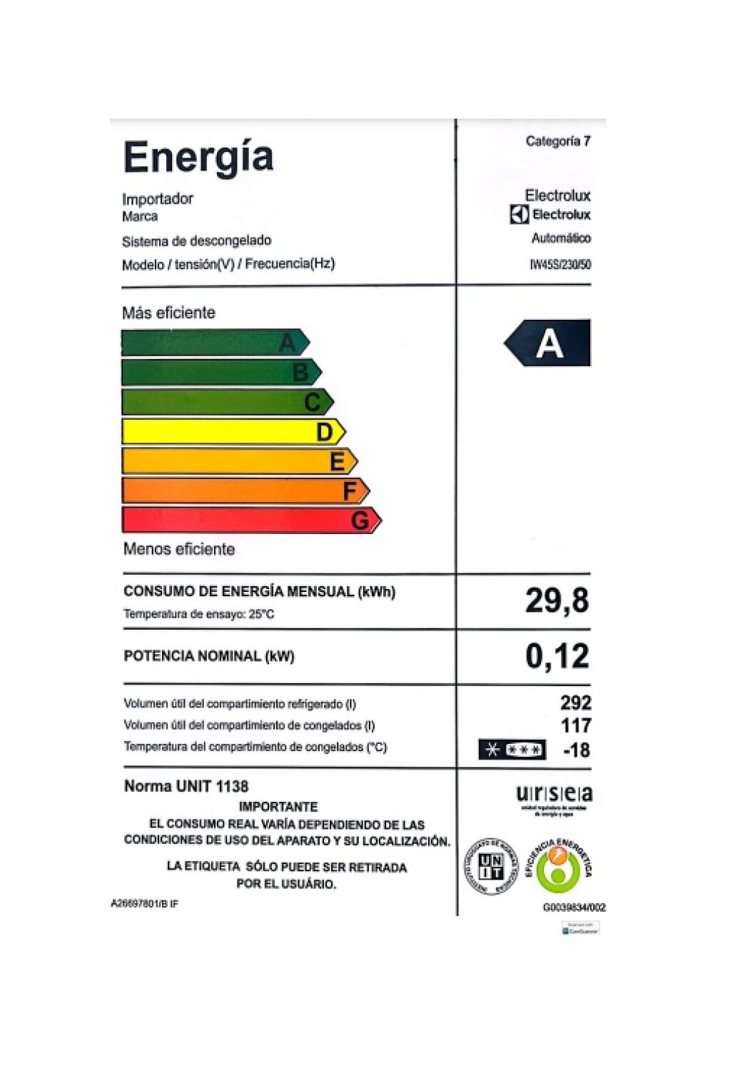 Diseño de elegancia para que tu cocina sea la protagonista además de excelente calidad y capacidad tiene la heladera inverter Electrolux IW45S