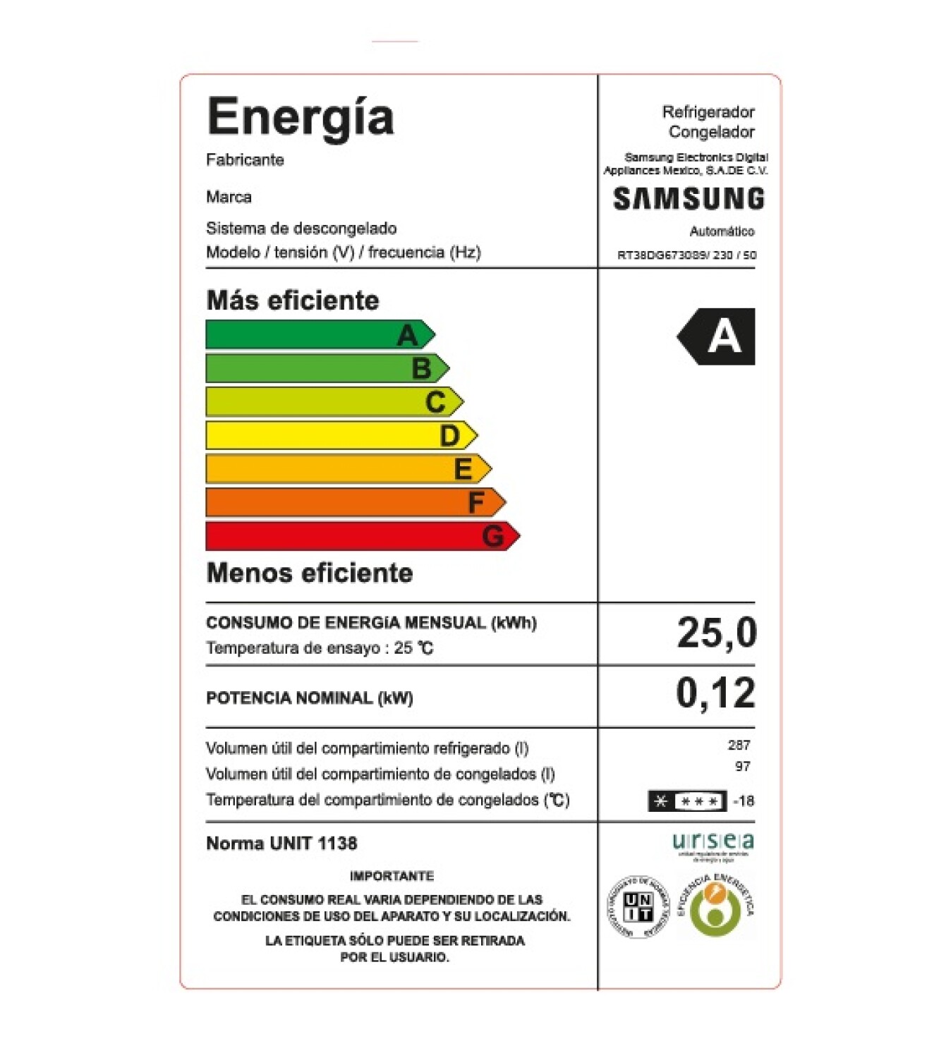 La heladera Samsung RT38DG6730S9EY da a tu hogar un aspecto elegante y moderno. El diseño limpio y contemporáneo cuenta con unas estilizadas puertas planas con un acabado plateado de primera calidad en el borde y tiradores integrados que no sobresalen.