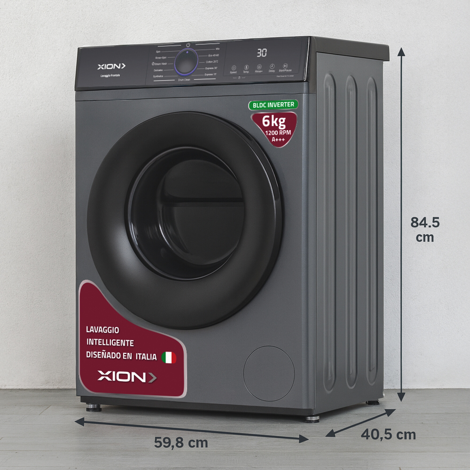 Lavarropas carga frontal 6Kg Gris Inverter Xion XI-LAV66X