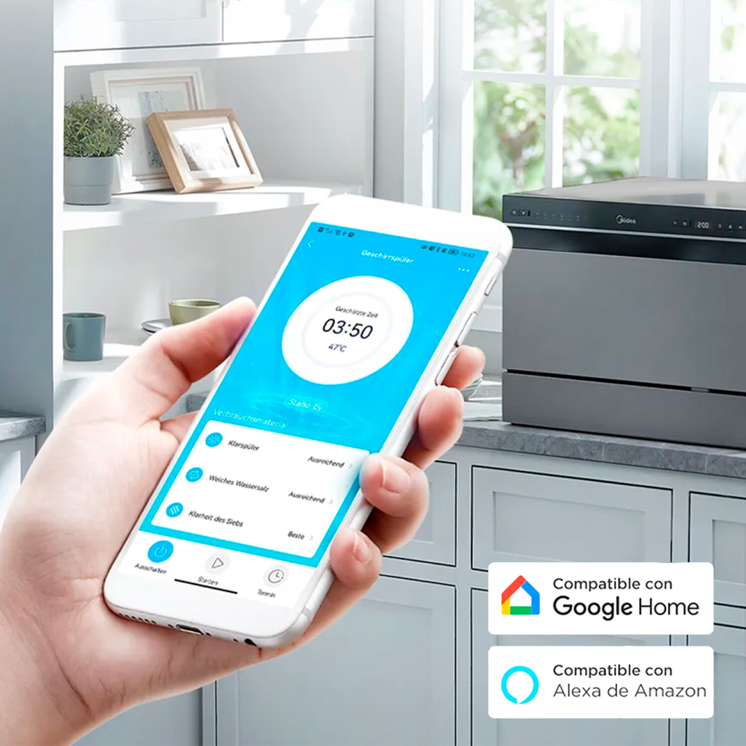 Lava tus platos de manera inteligente con este lavavajillas de 6 cubiertos compatible con SmartHome App. Dispone de 7 programas, inicio diferido de 1–24 horas, bloqueo de seguridad para niños y capacidad para platos de hasta 25 cm. Instalación libre de encimera o empotrable, compacto y eficiente para cocinas modernas.