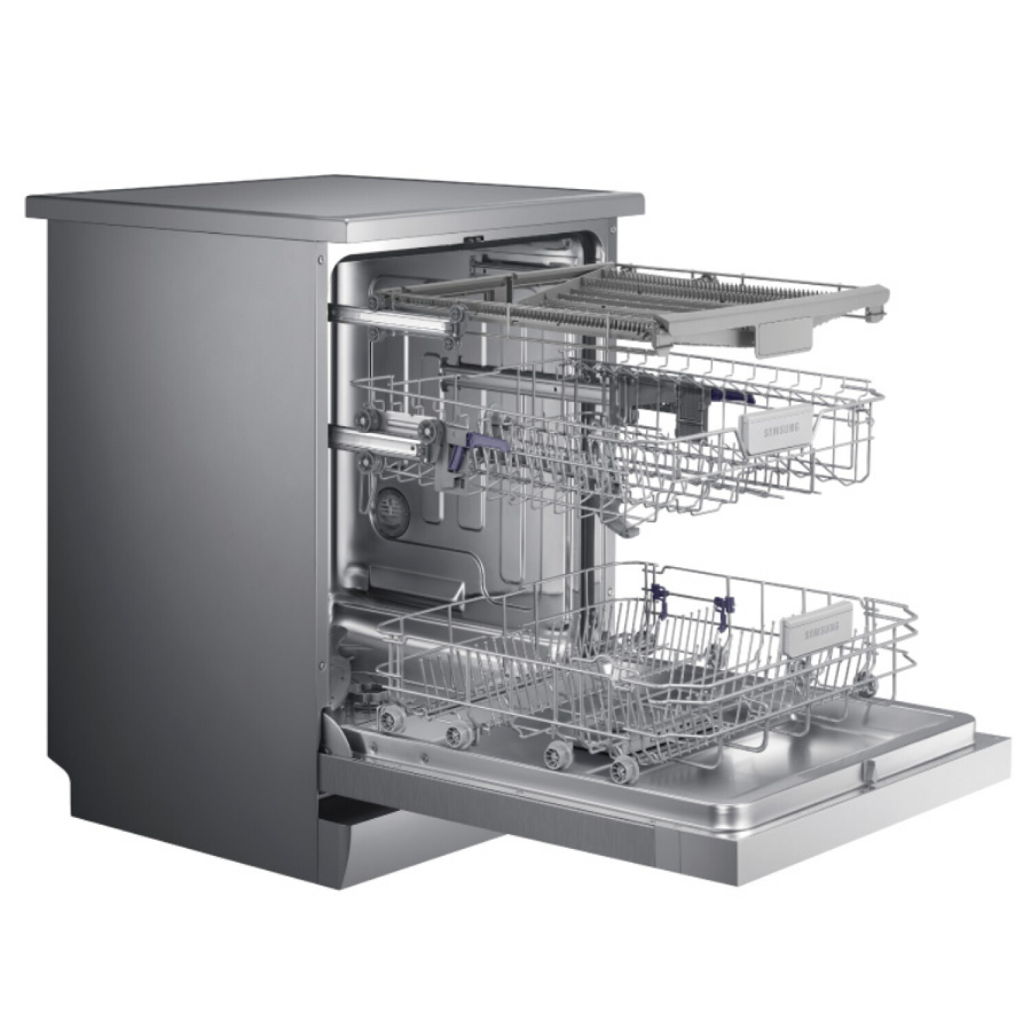 Ollas altas, bandejas anchas y platos grandes no son un problema con el ajuste de alto de un paso en la bandeja superior. EL lavavajillas Samsung DW6050 se acomoda a vajilla de cualquier tamaño.