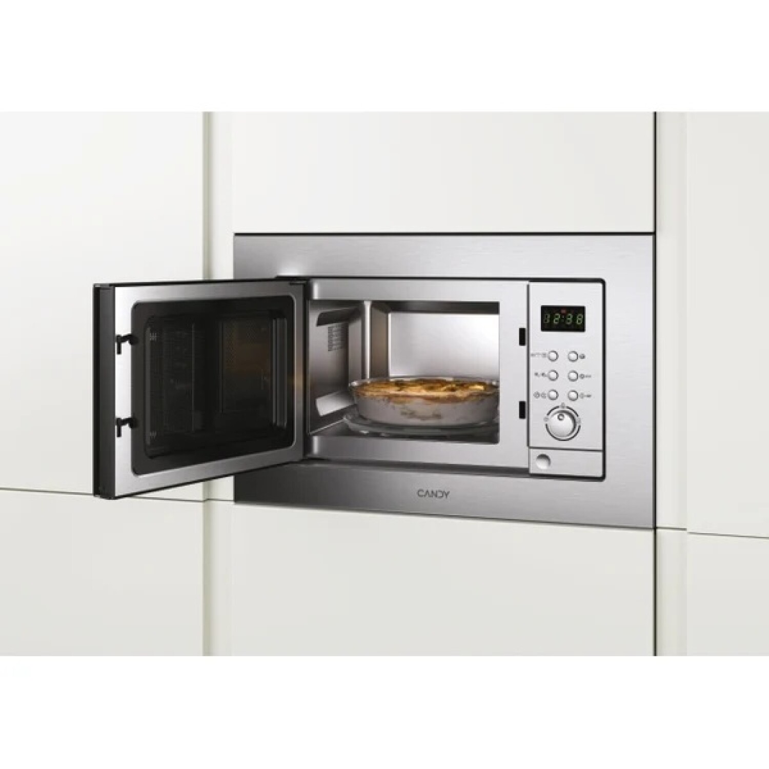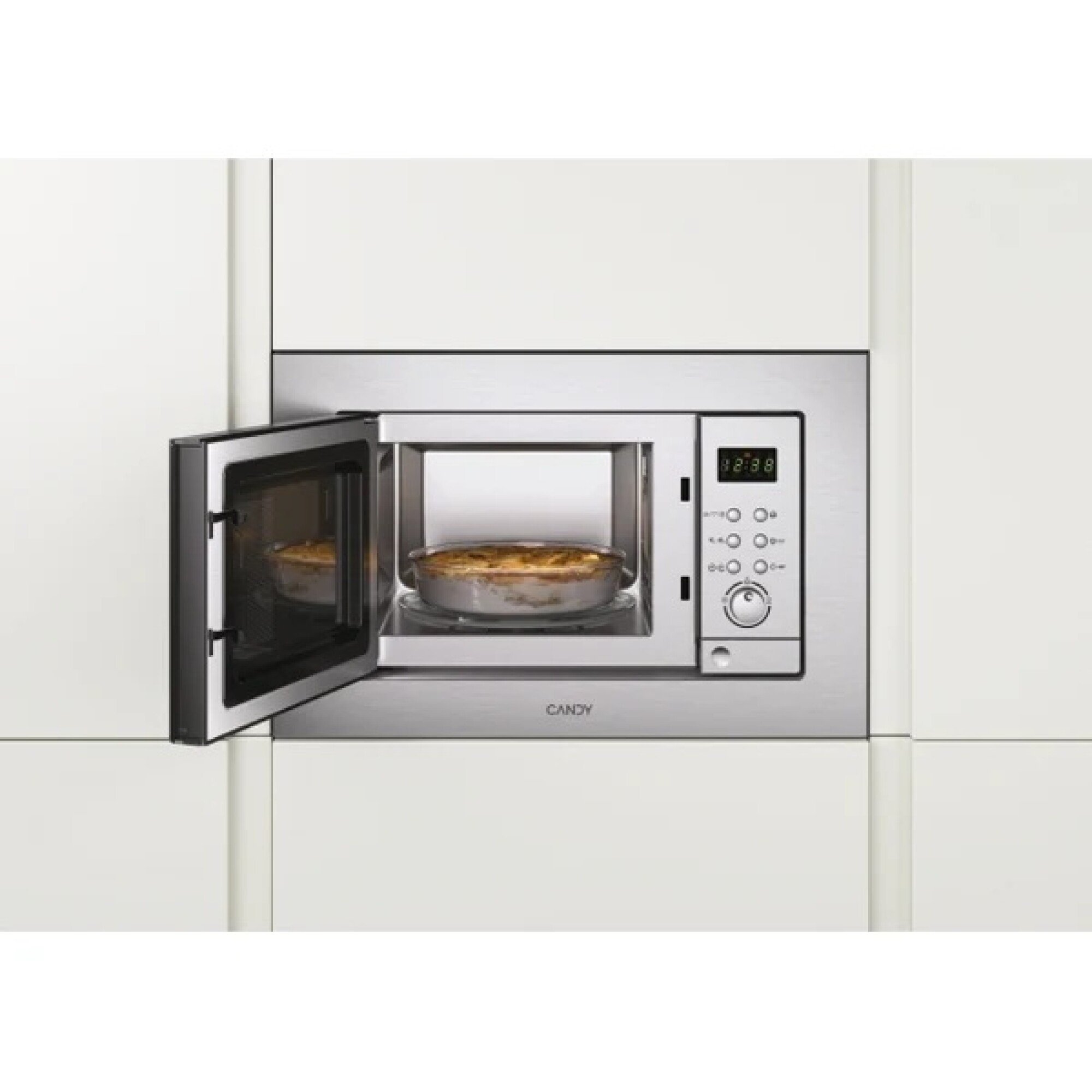 El Candy microondas de empotrar MIC 201, fabricado en acero inoxidable, combina eficiencia, diseño y elegancia gracias a su marco frontal que realza cualquier cocina.