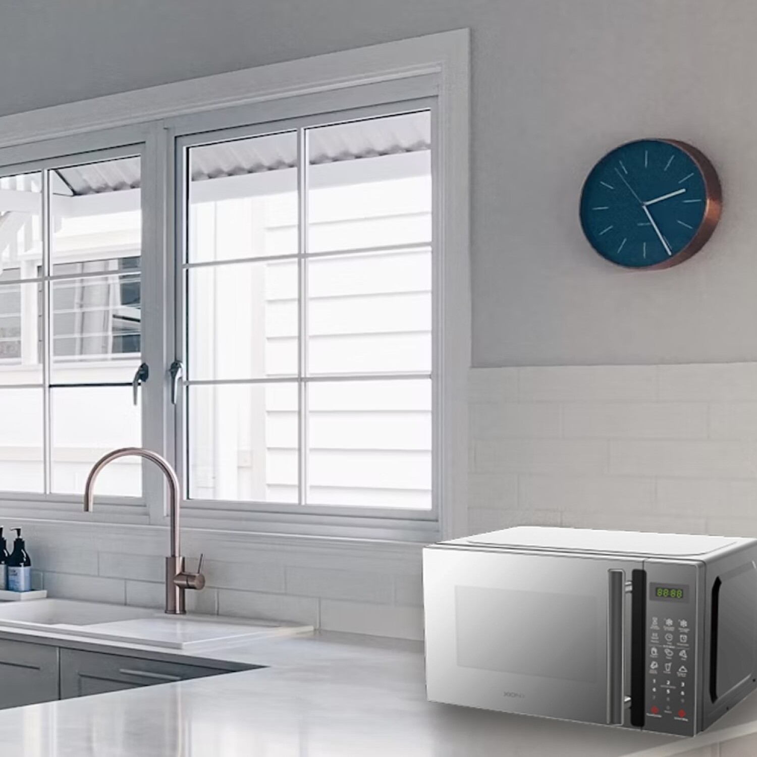 Prepara tus comidas de forma rápida y práctica con este microondas de 25 L y potencia de 900 W. Incluye grill de 1000 W, cocción combinada, 10 niveles de potencia y menú automático con 6 selecciones.